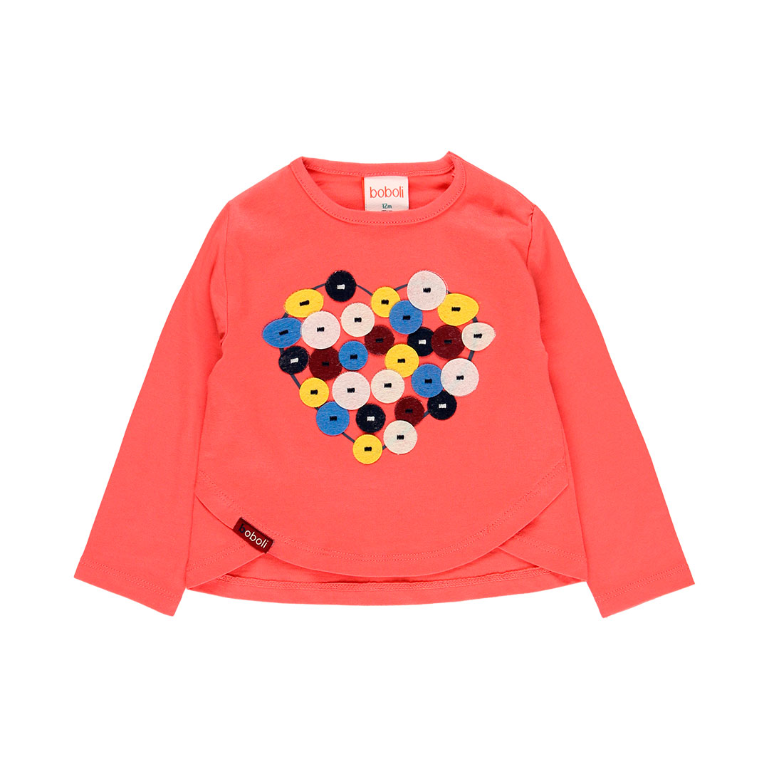 Boboli Heart Long Sleeve T-Shirt in Coral