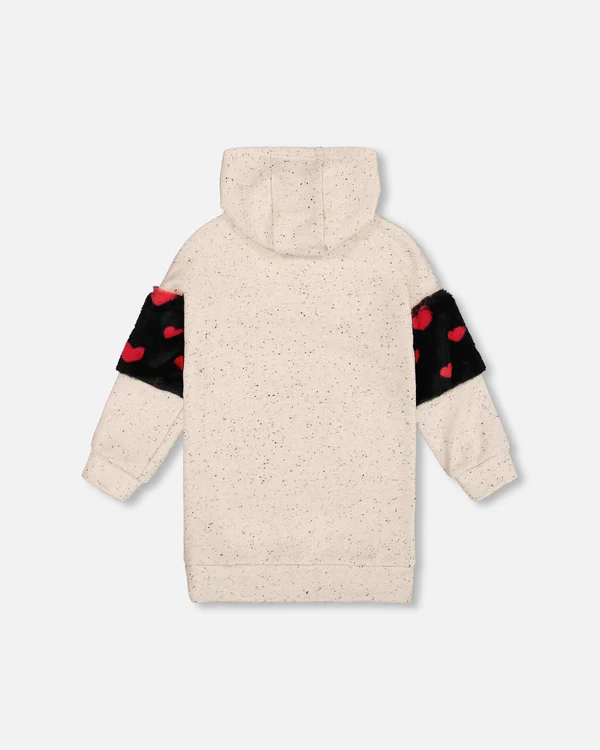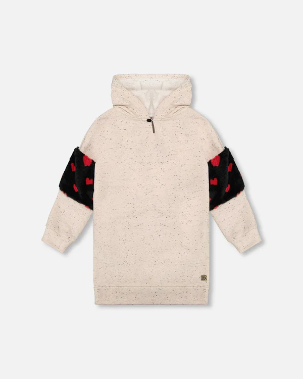 Deux par Deux Hooded French Terry Dress with Heart Bag in Oatmeal