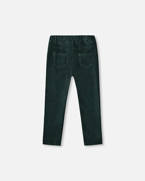 Easy to dress up or down, the Stretch Velour Rib Treggings in Dark Green are a go-to piece for everyday play and cozy outings. These slim-fit pants feature a vertical rib texture in soft stretch velour, and two stitched front pockets that add just the right amount of detail. Their elastic-free design ensures maximum comfort while keeping things stylish and snug.