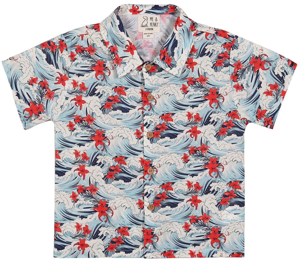 Embrace vacation vibes with the Maui Hawaiian Waves Printed Woven Shirt, designed especially for little ones who love beachside fun. Featuring a cool, surf inspired print and signature wooden buttons, this shirt adds an effortless touch of island style.